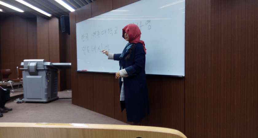 Pukul 07.30 pagi ini cuaca di kota Yeoju sekitar 30 C, kami 7 orang peserta PGLN jurusan Multimedia meninggalkan dormitory untuk melaksanakan kegiatan pembelajaran kami, di kampus kami bertemu dengan Pengajar Bahasa Korea bernama Gim Na Young yang cantik, atraktif dan semangat sehingga membuat kami para peserta dari Multimedia yang bergabung dengan peserta PGLN lainnya dari GTK dan PAUD sangat bersemangat dan tertarik untuk mengikuti pembelajaran tentang Hangeul ini, disamping itu disela-sela pembelajarannya Miss Gim Na Young kadang-kadang menunjuk peserta secara tiba-tiba untuk mengulangi dan membaca huruf atau kata yang beliau tulis di papan tulis, sehingga kita harus selalu siap ketika ditunjuk oleh beliau, hal tersebut tentu saja membuat kami harus terus siap dan mempelototi layar dan papan tulis yang ada di depan kami dan pasti ngantuk yang biasanya datang dalam kondisi lingkungan yang dingin akan menyingkir jauh-jauh.