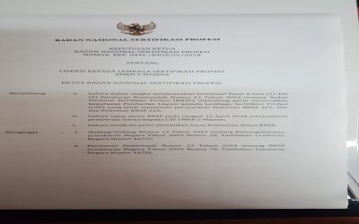 Perjuangan LSP SMKN 5 Majene untuk mendapatkan sertifikat lisensi perlahan mulai mendapatkan titik terang dengan didapatkannya SK lisensi dari BNSP de